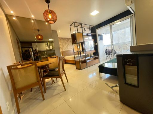 -42M² -Mobiliado e decorado -Varanda fechada com cortina de vidro -Unidade Nascente -Rico em armários -01 vaga garagem coberta -Aceita Arbnb ou aluguel temporada -Excelente opção para investimento ou moradia Prédio conta com lazer completo Prédio possui 3 vagas de garagem para veículo elétricos Relação da mobília:b01-Cama casal , 02- Criados , 01- chuveiro , 01- espelho redondo banheiro , 01- sofá , 01- mesa redonda de madeira com 4 cadeiras 01- ar condicionado 18 mil btus, 01- mesa centro de vidro com inox, 01- microondas, 01- purificador de ar, 01- fogão cooktop, 01- geladeira duplex inox, 01- coifa , 01- lavadora roupas, 02- cadeiras de corda sacada, 01- Tv de 40 polegadas. (Obs: não vai ficar Tv grande e o frigobar )