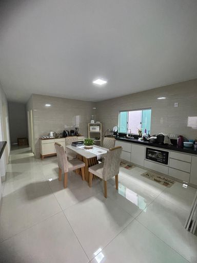 -390M² Terreno -170M² de construção -03 quartos sendo 01 suíte -Porcelanato -Janelas e portas em blindex -Telhado todo na telha isotérmica e forrada -Área coberta na frente para 3 veículos -Varanda ao fundo -Banheiro social -Cozinha grande com armários -Sala de tv -Área de serviço separada. -Área Gourmet com churrasqueira a carvão -Banheiro de apoio a área gourmet -Fogão a lenha -Piscina Aquecida e com cascata -Localizada próxima ao anel viário e de todo comercio local necessário
