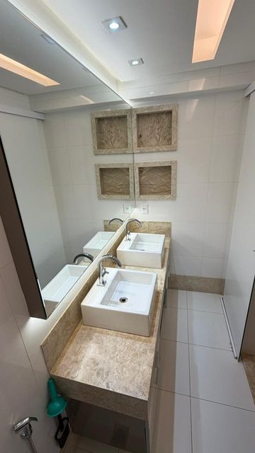 -150M² -03 suítes -Lavabo -Área de serviço separada da cozinha -Saída de serviço -Elevador privativo -03 vagas paralelas -Escaninho -Semi mobiliado -Área de lazer completa