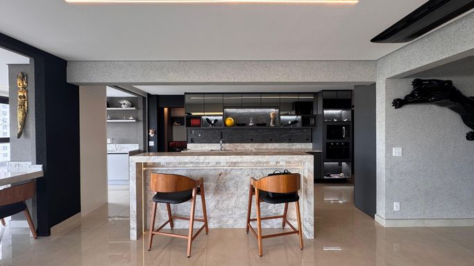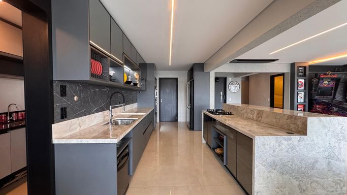 -Varanda e cozinha integradas com o living