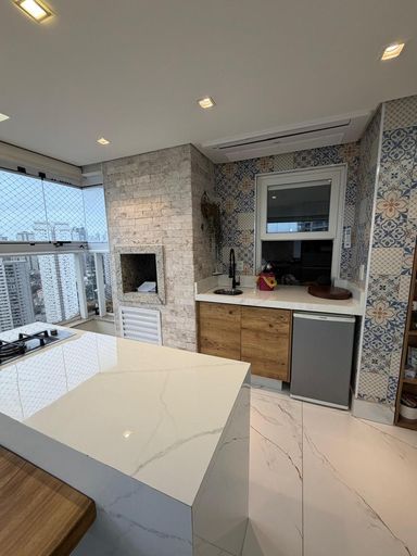 -Varanda gourmet com churrasqueira à carvão