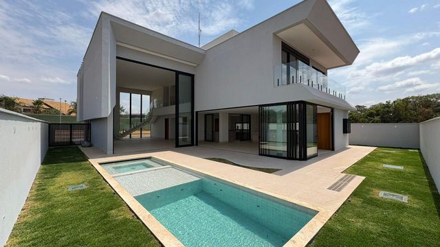 -640M² terreno -510M² construção -05 suítes -Sala 03 ambientes -03 vagas cobertas -Ponto elétrico -Poço artesiano -Sistema áudio e vídeo -Preparação pra elevador -Infraestrutura solar -Alto padrão -Condomínio de luxo