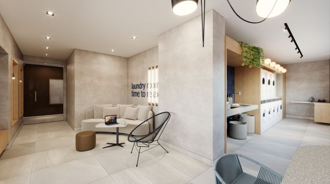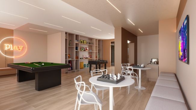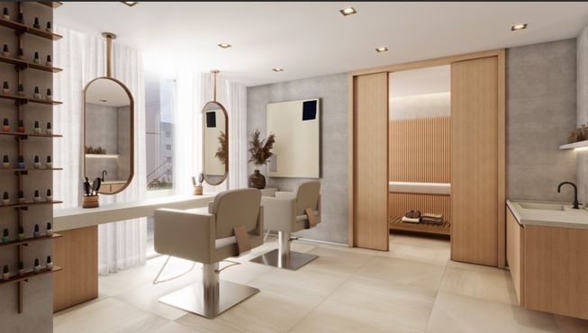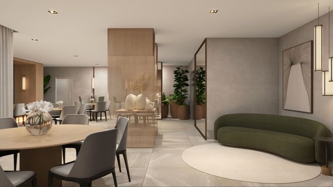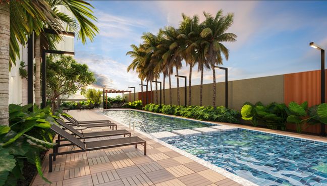 Lazer completo com: mini-mercado, lavanderia coletiva, espaço zen, auditório, salão de reunião, coffee break, praça de alimentação, bicicletário, coworking, salão de festas, espaço fitness, espaço gourmet, salão de jogos, piscina, lavanderia, espaço beleza.