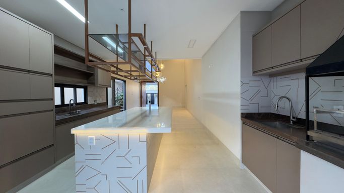- Cozinha com ilha e Cuba com cascata