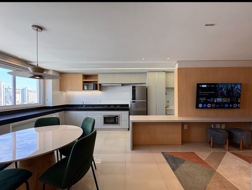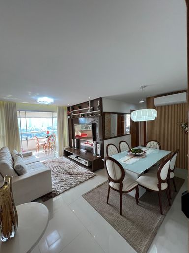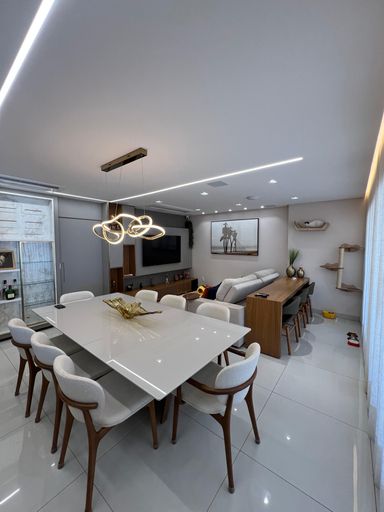 -149M² -Mobiliado e decorado -03 suítes sendo a master com closet -Nascente -Andar alto -Elevador privativo -Sala de Tv , jantar e cozinha -Área de serviço separada -Banheiro de serviço -Varanda com churrasqueira -Lavabo -Roupeiro -Marcenaria de alto padrão -Sala com 2 ambientes e ar-condicionado K7 -Sistema de som e Wi-Fi independentes -Eletrodomésticos novos Condomínio com lazer completo: Piscina, sauna, academia, quadra poliesportiva, espaço gourmet, playground, portaria 24h