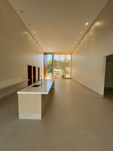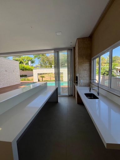 -Cozinha integrada com bancada e ilha em quartzo branco