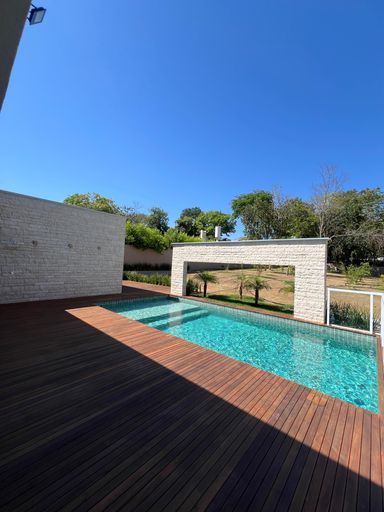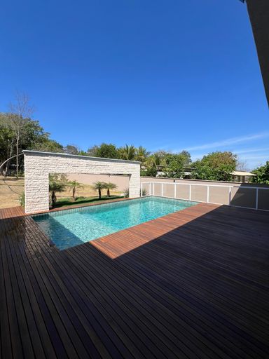 -Piscina, cascata ,aquecimento solar , Deck em madeira e pastilhas hijau